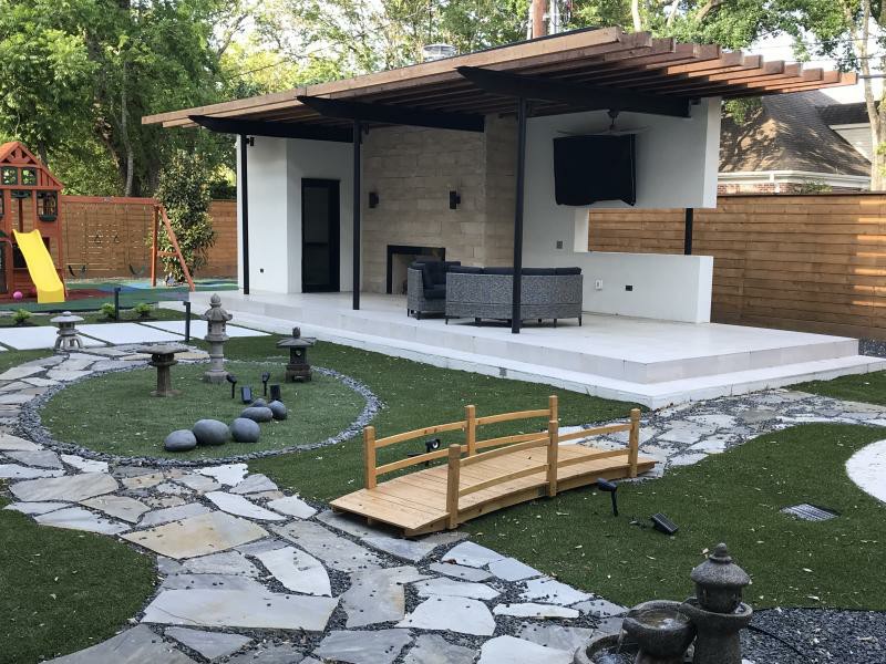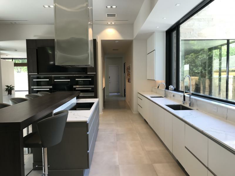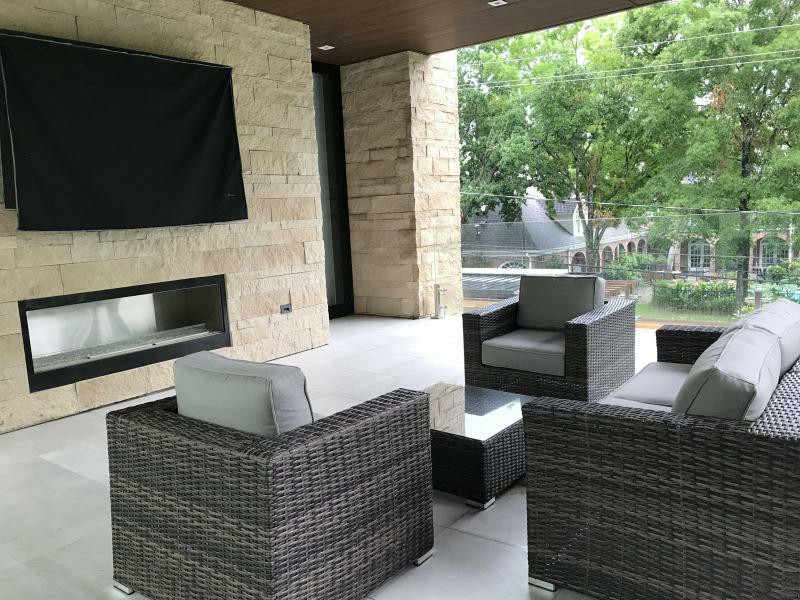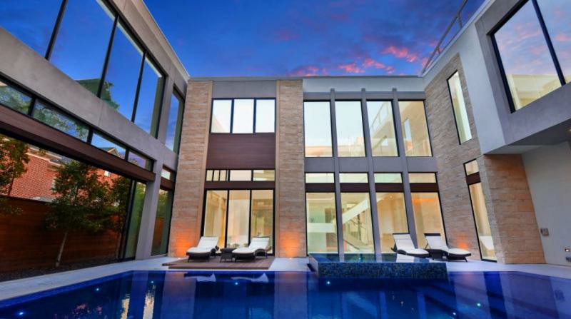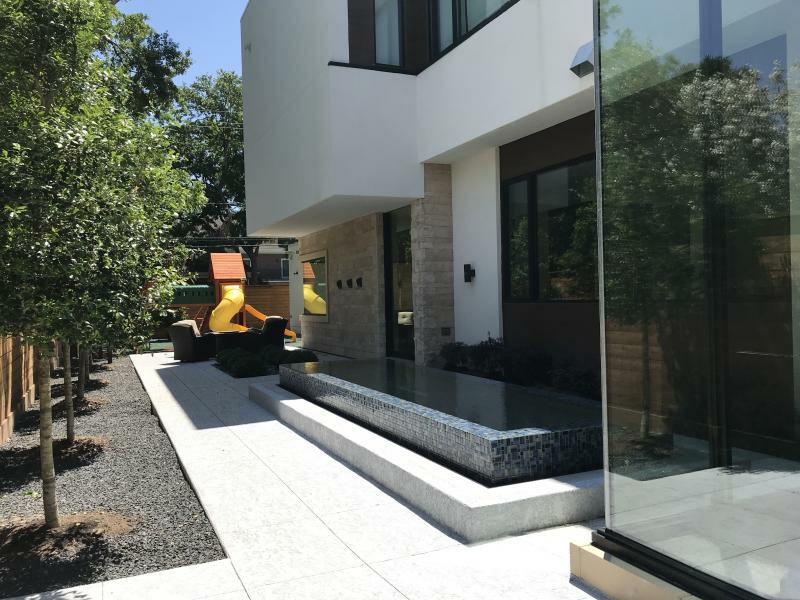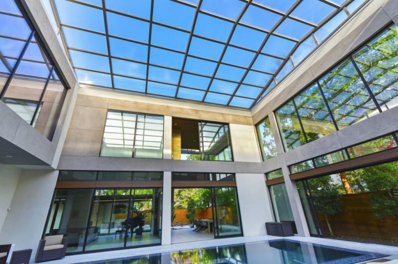 New contemporary build in West University. Indoor / outdoor zero infinity edge pool with fully automatic retractable roof is at the center of this California contemporary home.